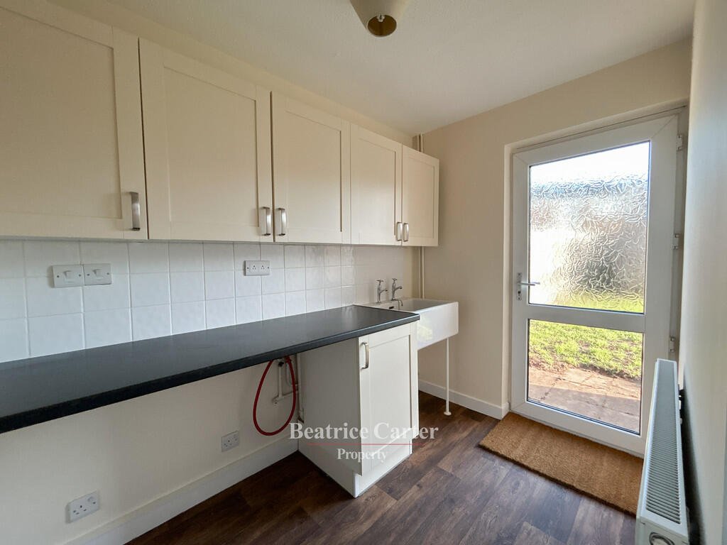Utility Room – 5’07” x 8’05” (1.70m x 2.57m), luxury vinyl tile flooring with wall units and door to rear garden.Â