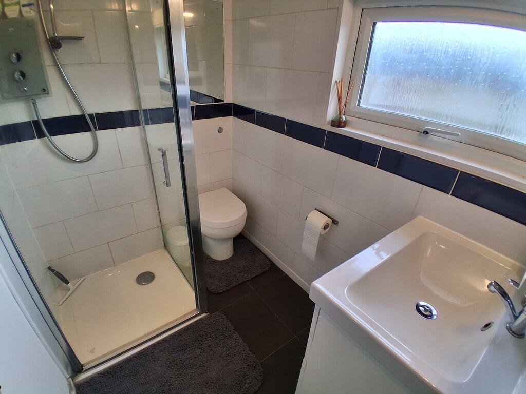BATHROOM Obscured double glazed window to front aspect, heated towel rail, shower