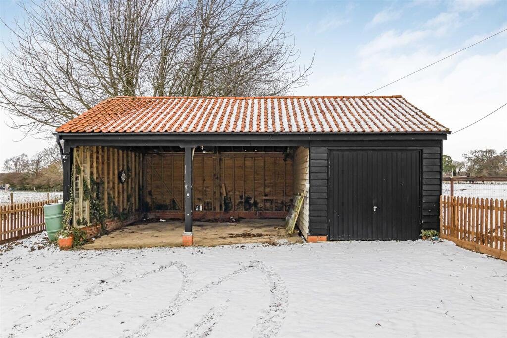 Outside – The property is attractively situated at the end of a no through road, leading to a shingled driveway and parking area. There is a single garage and a double carport. The garden is laid to lawn with hedge borders and a paved patio area.