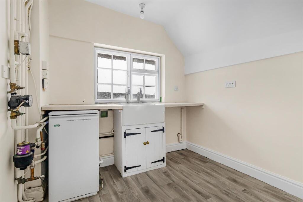 Utility Room – 2.40 x 2.9 (7’10” x 9’6″) – with Grant oil fired central heating boiler, deep ceramic sink, window to front aspect, pantry cupboard with window to side aspect.