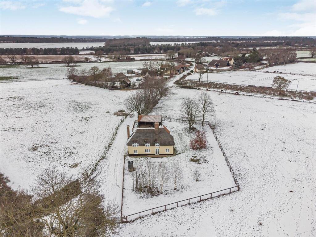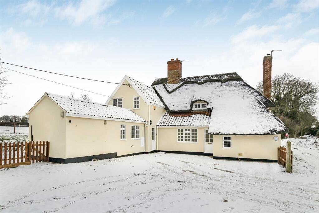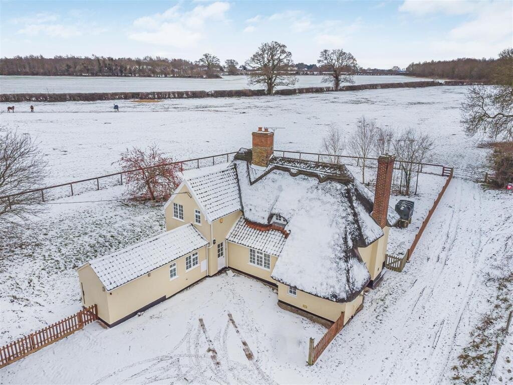 A 4 bedroom detached period thatched cottage standing in a delightful rural location at the end of a no through road. The property benefits from 2 reception rooms, 4 bedrooms and 2 bathrooms on the first floor and a ground floor cloakroom. Additional features include oil fired central heating, a garage and carport, attractive gardens and views over open farm land. EPC E. Available Now.