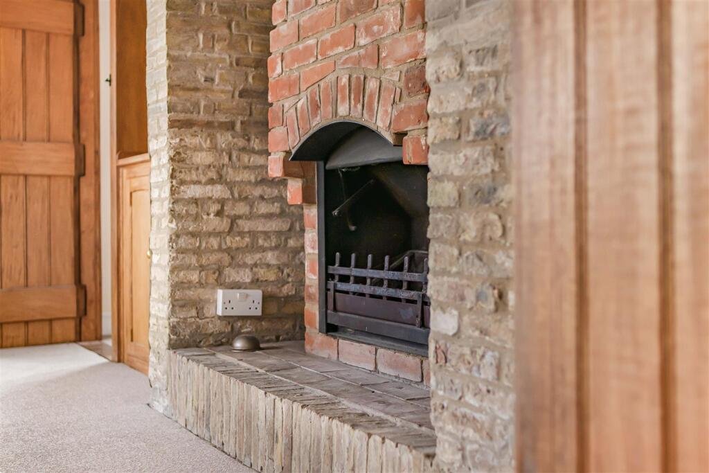 Family Room – 5.44 x 3.23 (17’10” x 10’7″) – with open fireplace with brick surround, wood book case and shelving, radiator, wall light points, window to side and rear aspects.