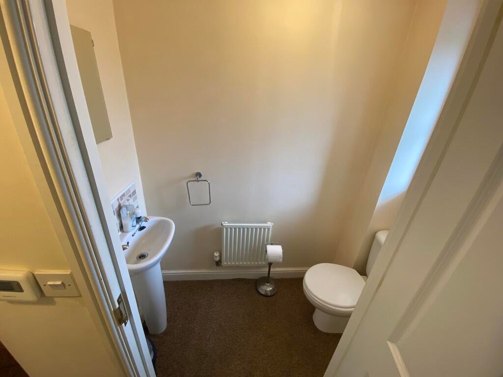 ENTRANCE HALLWAY With carpet, radiator, stairs, and doors to WC, kitchen, and lounge. Â