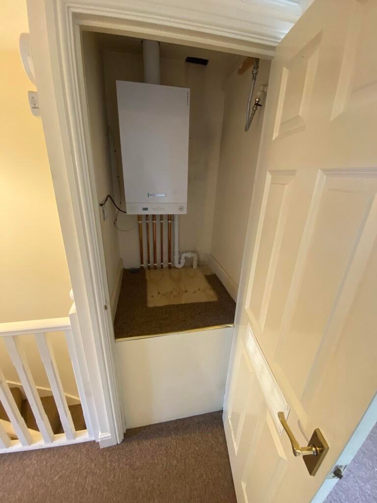 STAIRS/LANDING With carpet and storage cupboard housing the boiler. Â