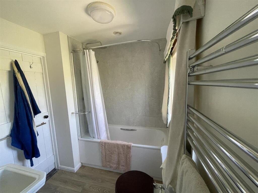 Jill style bathroom including an additional waterfall shower utilising mains pressure water through an energy efficient cylinder between one of the single and double bedroom.