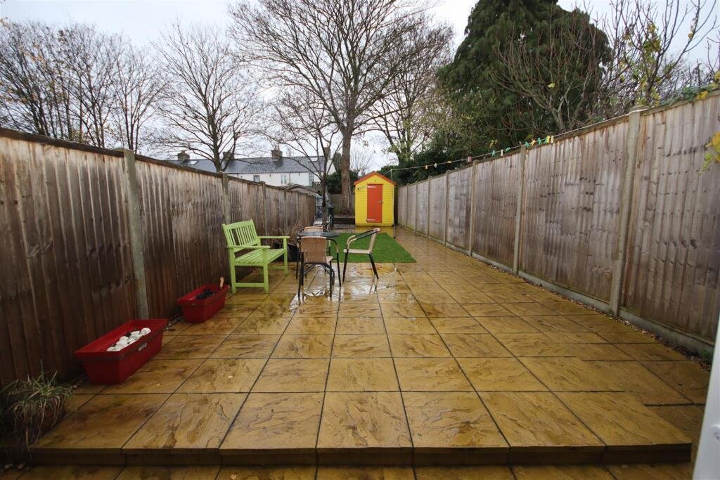 Garden – Large rear paved garden with patio area and wooden shedSide access