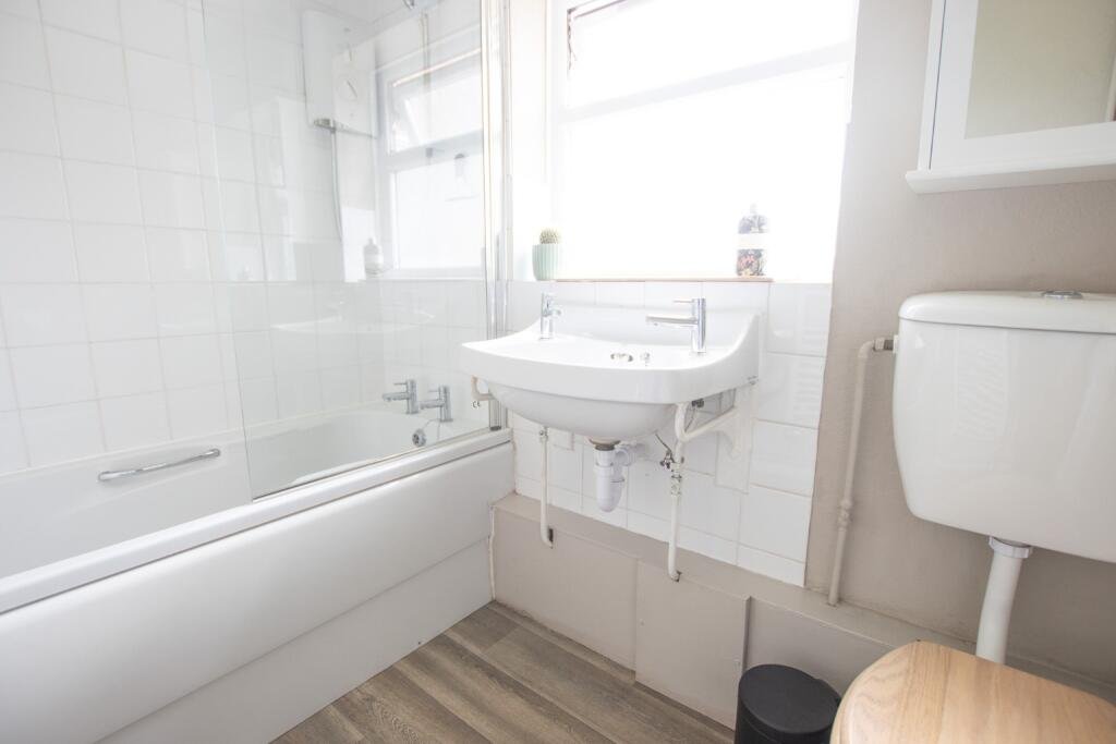 and an electric cooker point. There is also an under stairs pantry with electrical power points, which can house an upright fridge/freezer. Beyond the kitchen is the rear entrance porch, with a door into the neatly appointed family bathroom which includes a panel sided bath with an electric shower over.
