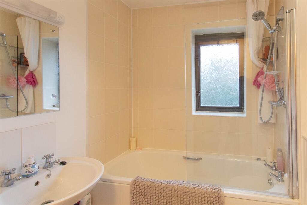 Bathroom – Window, fitted with panelled bath with shower over, wash hand basin and wc
