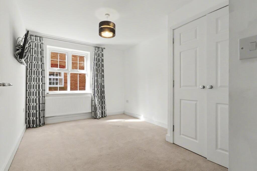 Bedroom 1 – 3.67m x 2.81m Double doored storage cupboard with hanging rail. Radiator. Window.