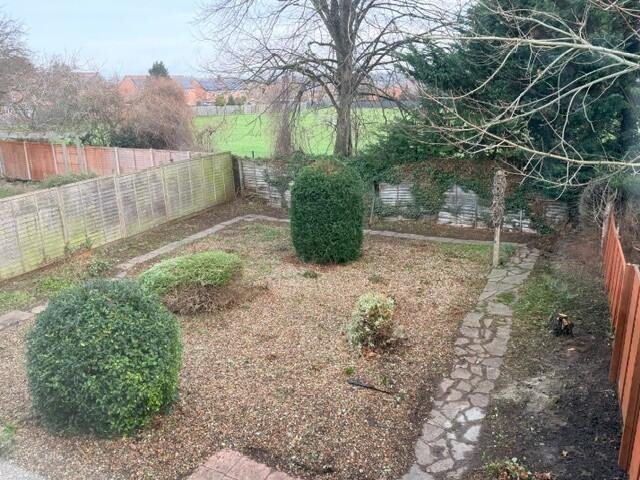 To the rear of the house, we have a large garden that has been gravelled and additional storage to the side of the property. The front garden is in the process of being converted into a driveway for several cars.