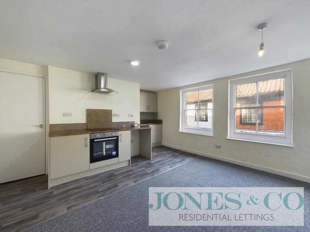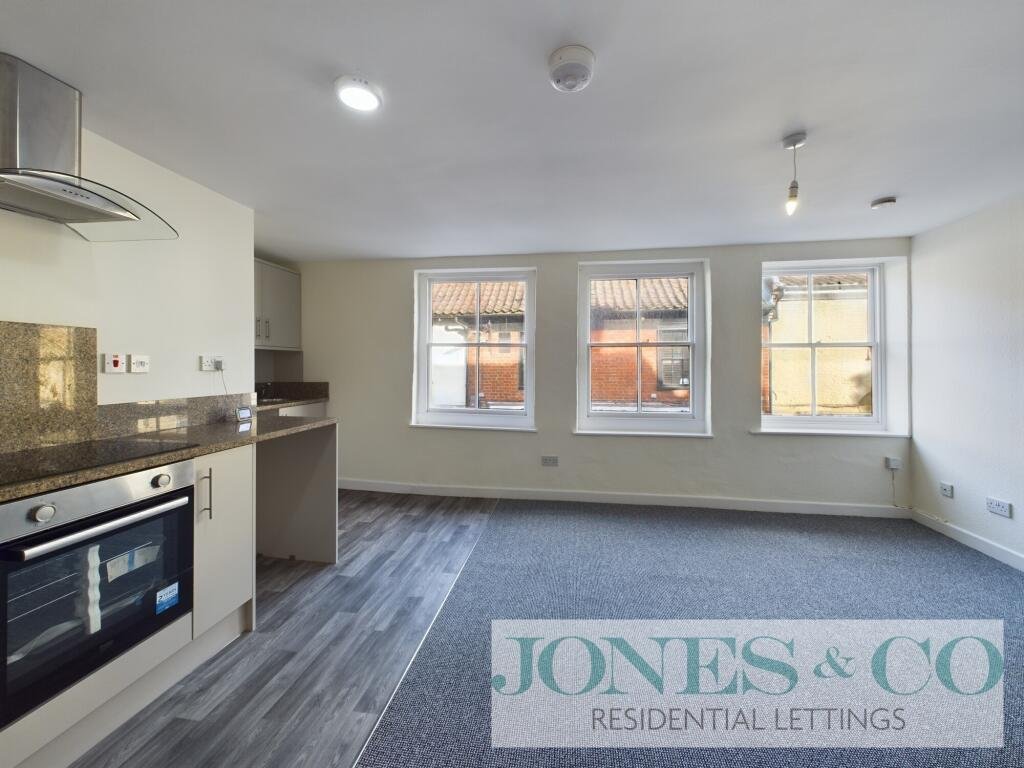 Situated in the charming market town of Aylsham, this beautifully presented 1-bedroom flat offers modern living with the convenience of being right in the town center. The flat boasts a spacious, open-plan kitchen and living area, ideal for both relaxing and entertaining. The well-equipped kitchen provides a sleek, contemporary finish with plenty of storage and work surface space, seamlessly flowing into the bright and airy living room.