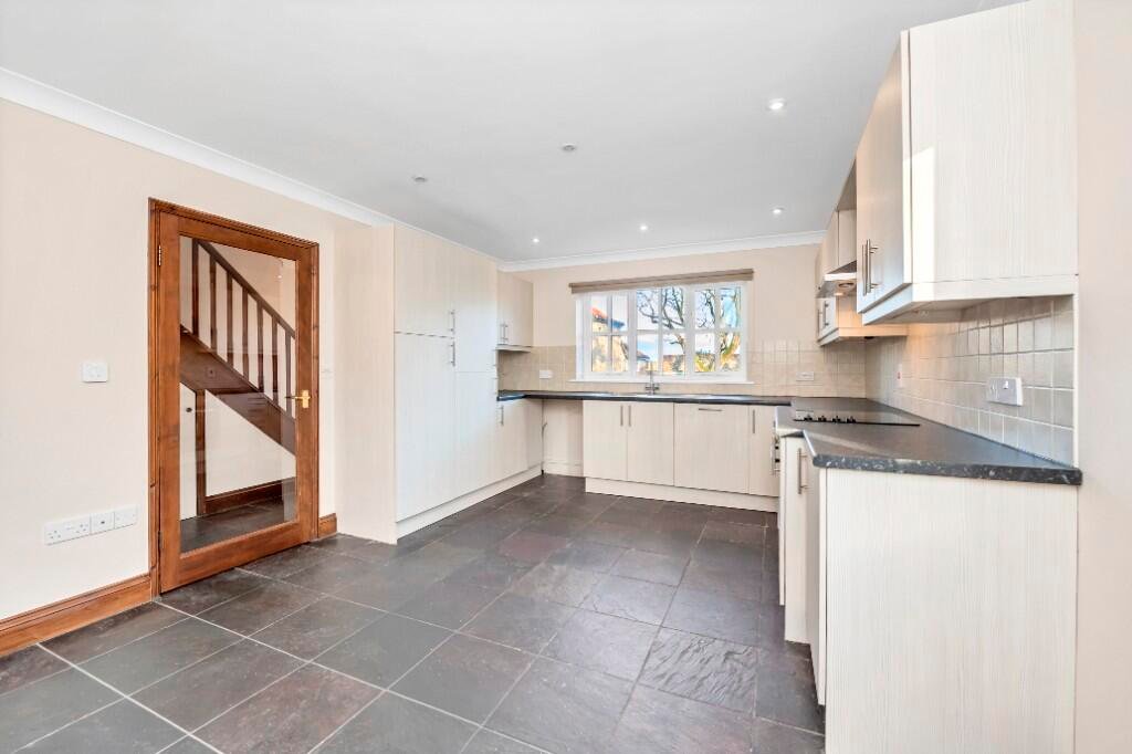 Kitchen/dining room: fitted wall & base & drawer units, integrated dishwasher, fridge/freezer, ceramic hob, extractor hood, electric oven, sink with mixer tap, window to front aspect, large dining area, window to side aspect, downlighters, tiled flooring.