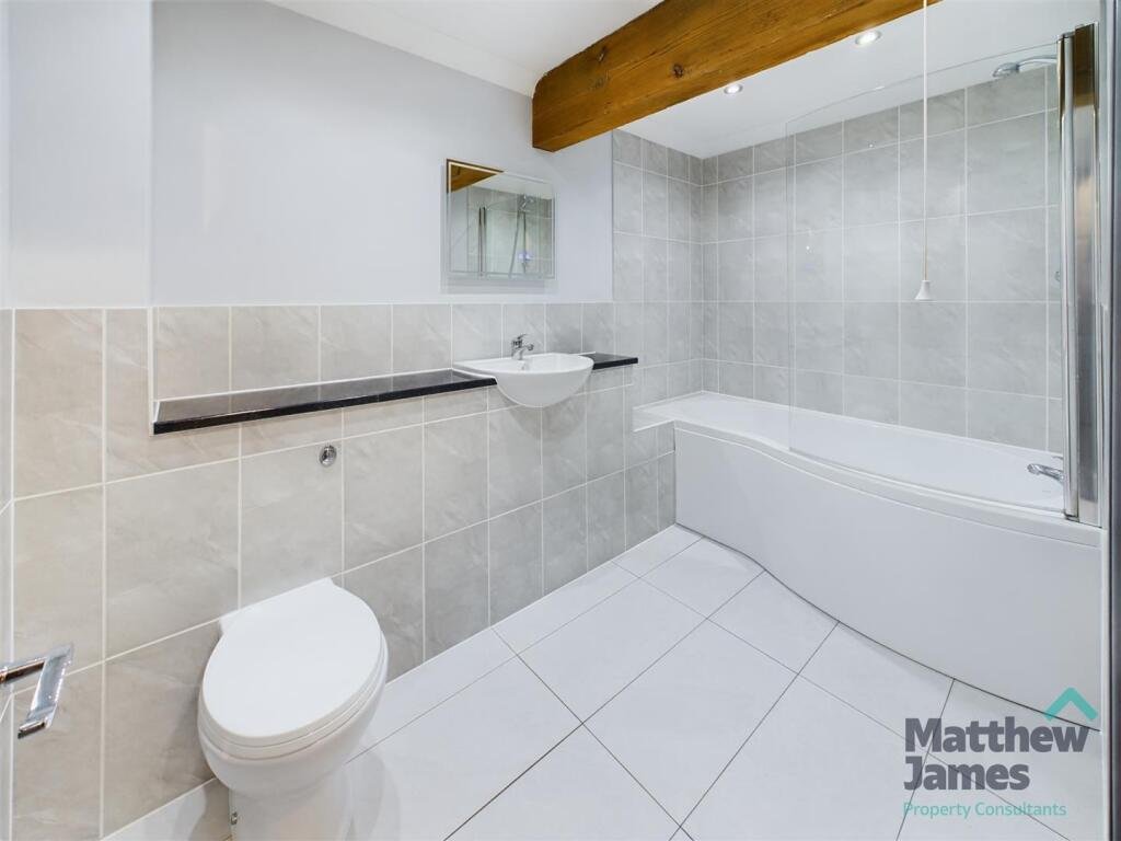 Bathroom – Panel bath with shower over. WC and wash hand basin.