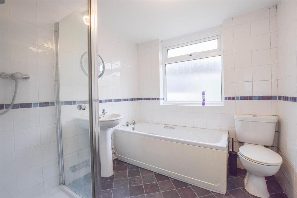 Bathroom – with panelled bath, separate shower cubicle, pedestal basin, low level wc, radiator.