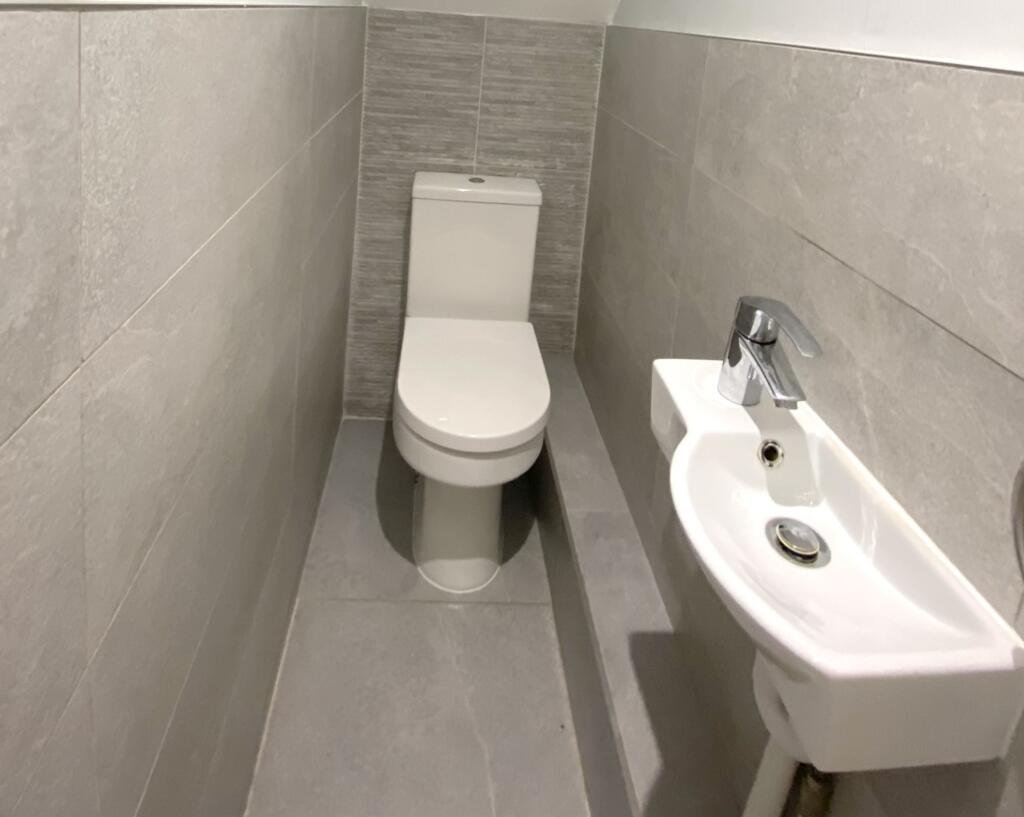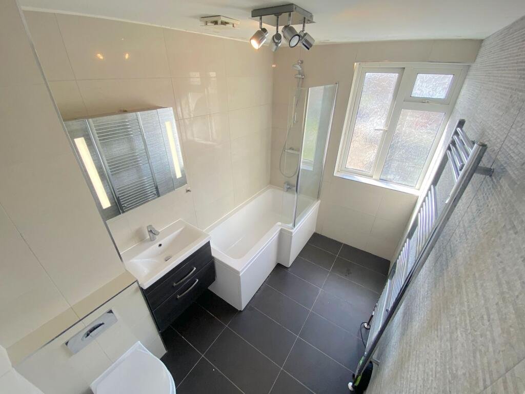 Second floor – A modern bathroom features tiled flooring and walls, a P bath, low level WC, hand wash basin with storage drawers beneath and wall mounted heated towel rail. There are two bedrooms each with built-in storage.