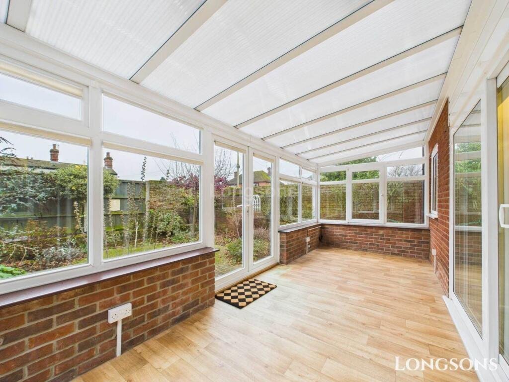 Conservatory – 19’7″ (5.97m) x 7’5″ (2.26m)UPVC double glazed conservatory, French doors opening to side garden, electric power sockets and lights.