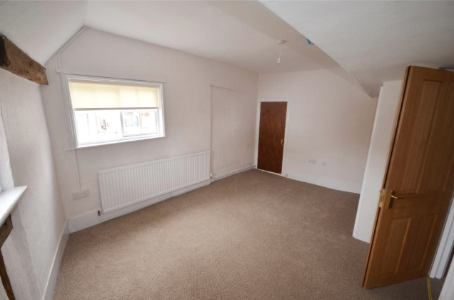 wardrobe, exposed beams, T.V. point, sash window to side, radiator.