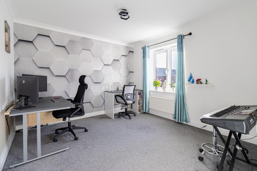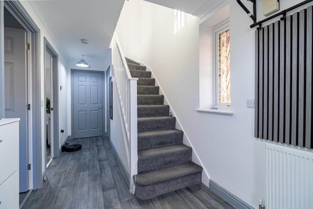 On the first floor, the accommodation continues with three well-sized bedrooms. The principal bedroom benefits from a walk-in wardrobe and a stylish en-suite shower room. Bedrooms two and three are both generous doubles and are served by a modern family bathroom accessed from the landing.
