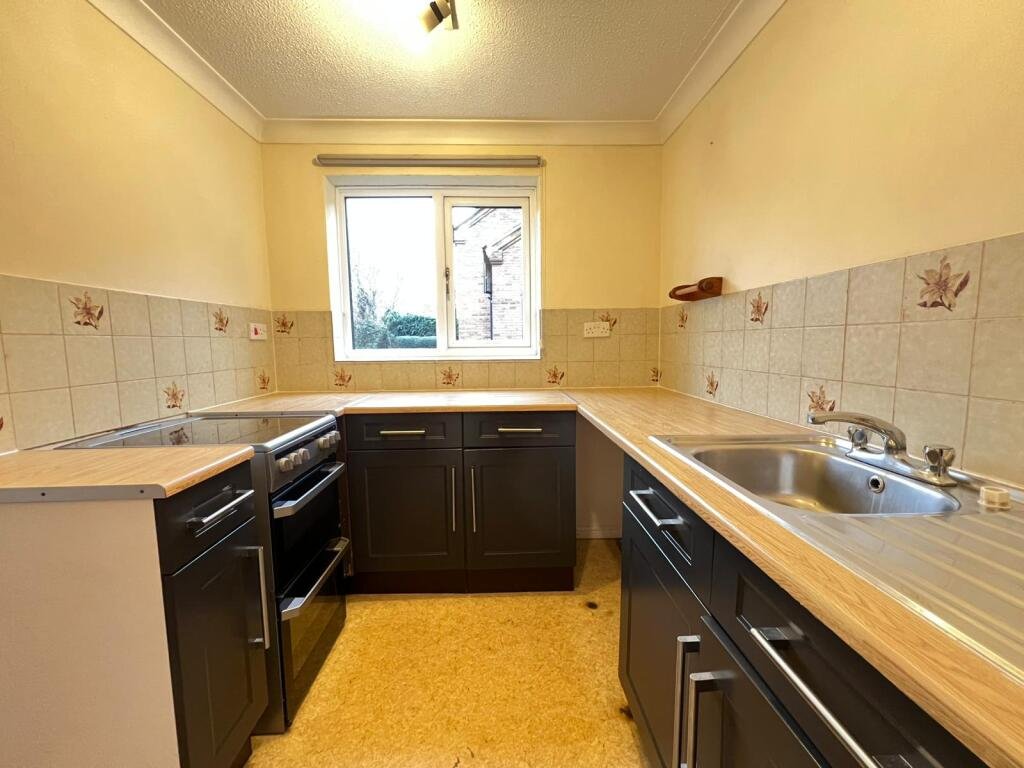 Kitchen Range of wall and base units drainer sink, oven, plumbing for washing machine and space for fridge freezer.