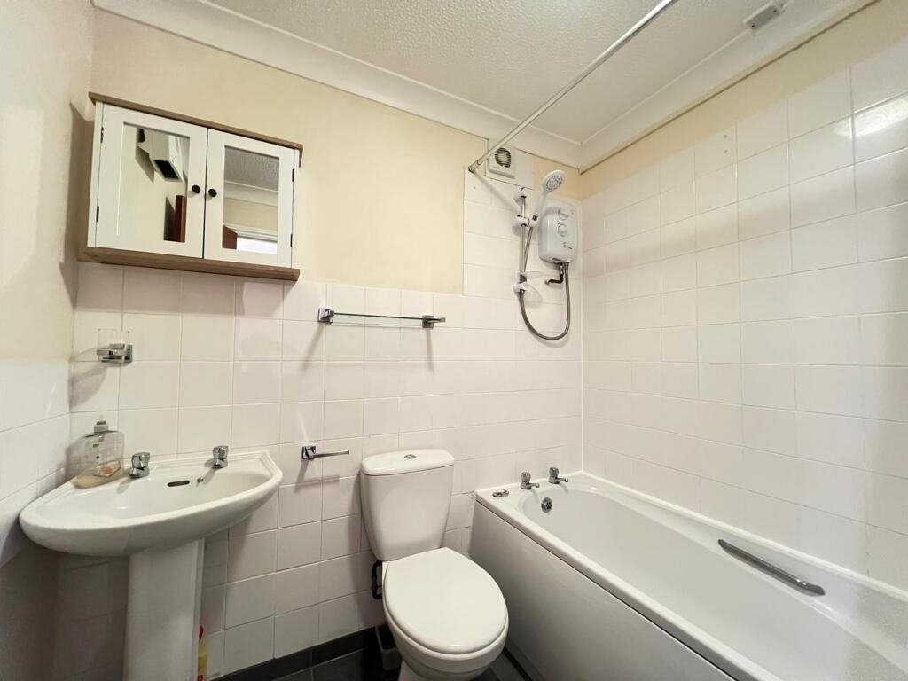 Bathroom Bath with shower over, low level w/c, wash hand basin.