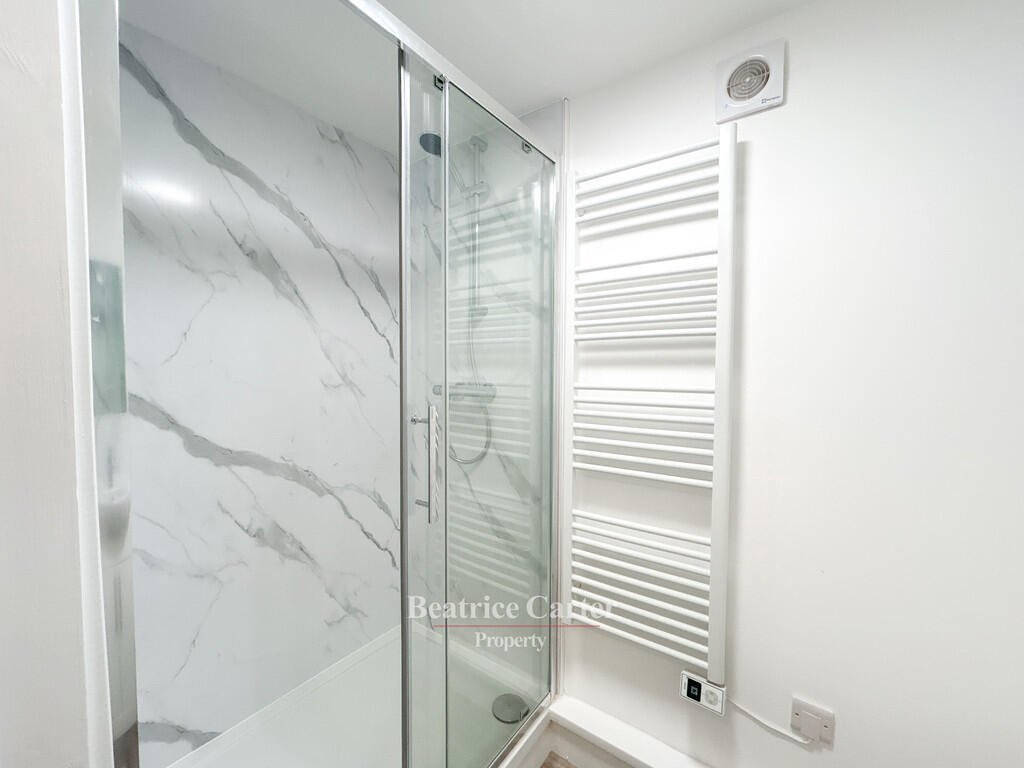 The sleeping area benefits from new carpets and a bright, neutral finish, while the luxury shower room offers marble-effect wall panels, walk-in