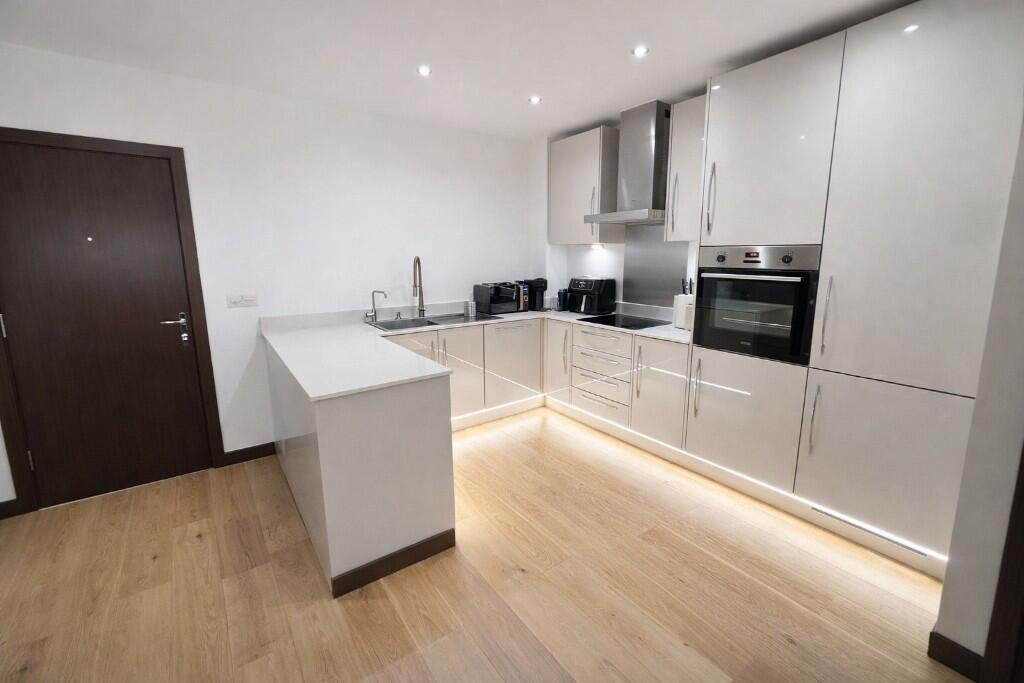 A beautiful FULLY FURNISHED one bedroom apartment on the Weston Homes development off Springfield Road with a contemporary open-plan living area and fully equipped kitchen with a range of integrated appliances including a washer/dryer, dishwasher, and large fridge/freezer. High specification throughout. The luxurious bathroom includes the latest Smart technology and vanity units with built-in storage. The bedroom is complete with a large, fitted wardrobe. The home also benefits from a private balcony.