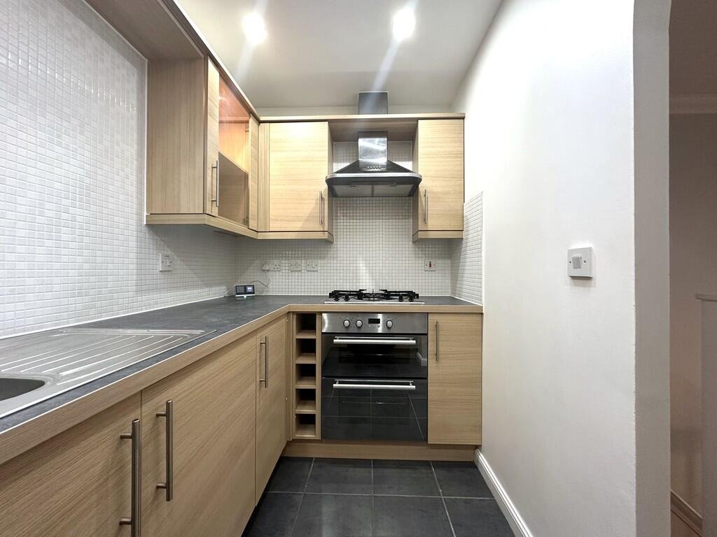 KITCHEN 10′ 7″ x 5′ 4″ (3.25m x 1.63m) A separate kitchen which has Integrated appliances that Include a built in double electric oven, gas hob, extractor, washer/dryer, and a 50/50 split fridge