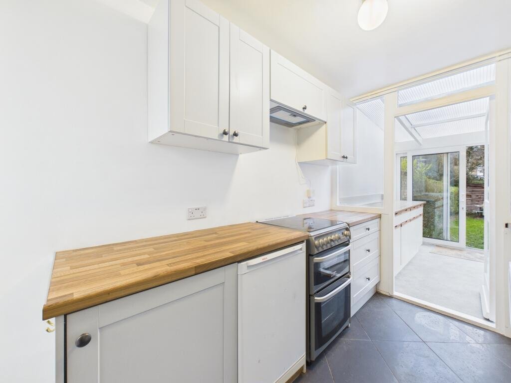 Includes understairs cupboard, free standing under counter fridge, gas cooker with overhead extractor and free standing washing machine.