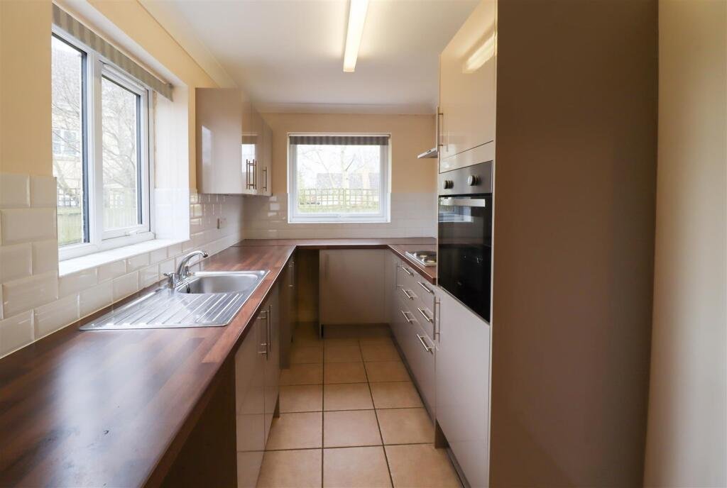 Kitchen – 4.24 x 2.07 (13’10” x 6’9″) – with tiled floor, breakfast bar, integrated electric oven and hob, extractor, space for fridge/freezer and plumbing for washing machine.