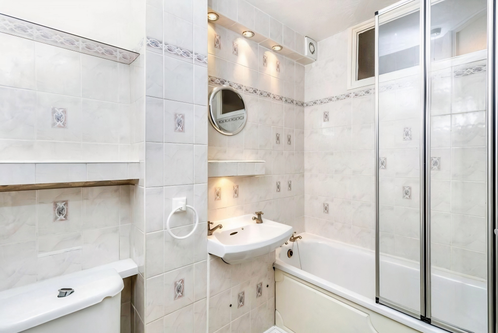 (2.62m x 2.62m)Fitted with a range of base and eye-level units in white with tiled splashbacks, four spotlight fitting, integral electric oven and hob, under counter fridge and freezer, washing machine, space for tumble dryer or dishwasher, vinyl flooring, double-glazed window to front aspect.AGENT’S NOTE:The washing machine will not be maintained by the landlord.