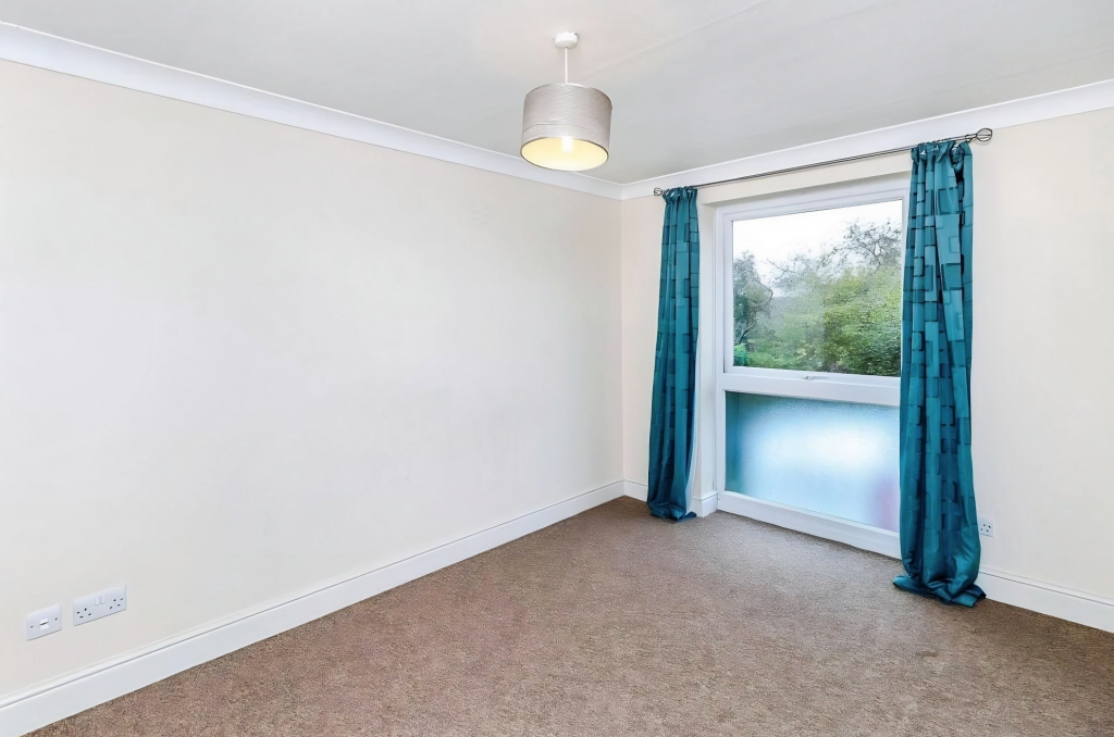 BEDROOM 1:12’9′ x 9′ (3.89m x 2.74m)Full length, large, double-glazed window to side aspect (half-frosted), coving to ceiling, wooden door with brass handle, space for furniture.